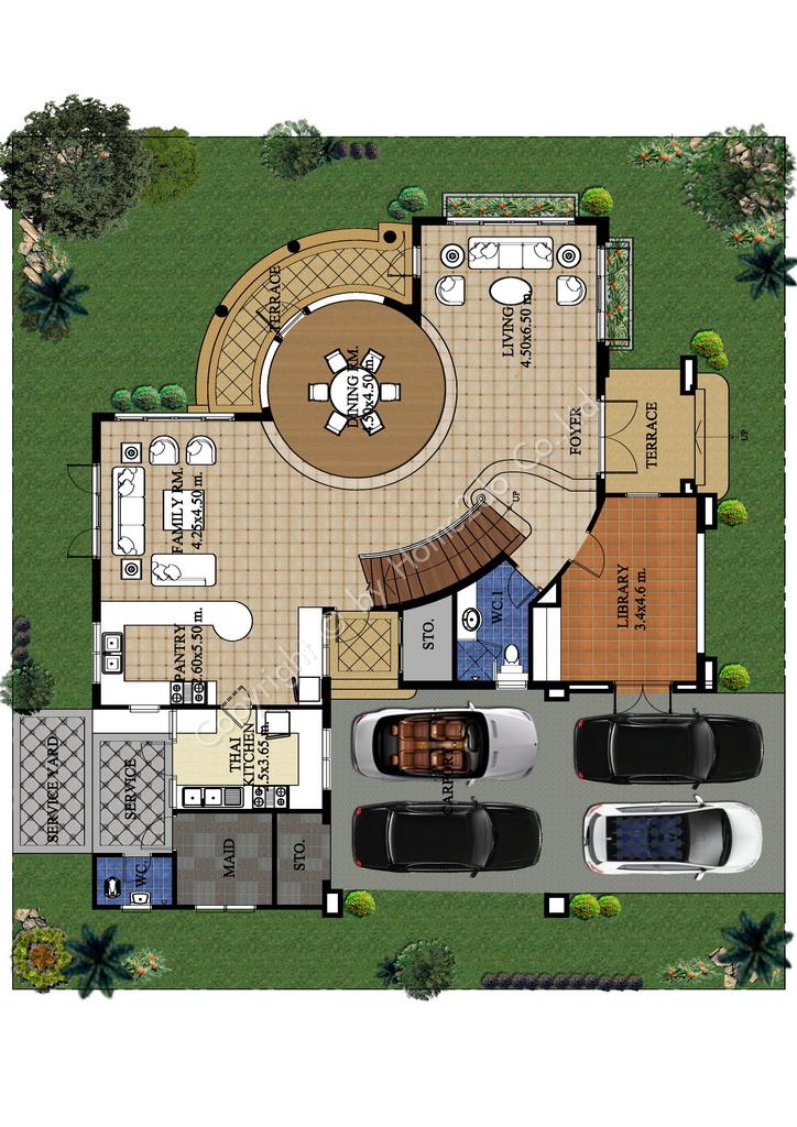 บ้านหรู โปร่งโล่ง และ โดดเด่นด้วยห้องทานอาหารทรงกลมเล่นระดับ รับกับบันไดโค้ง STYLE ยุโรป ที่ไม่เหมือนใคร เชื่อมต่อ SPACE มุมสวน และ ห้องอย่างลงตัวในพื้นที่ดิน ที่จำกัด